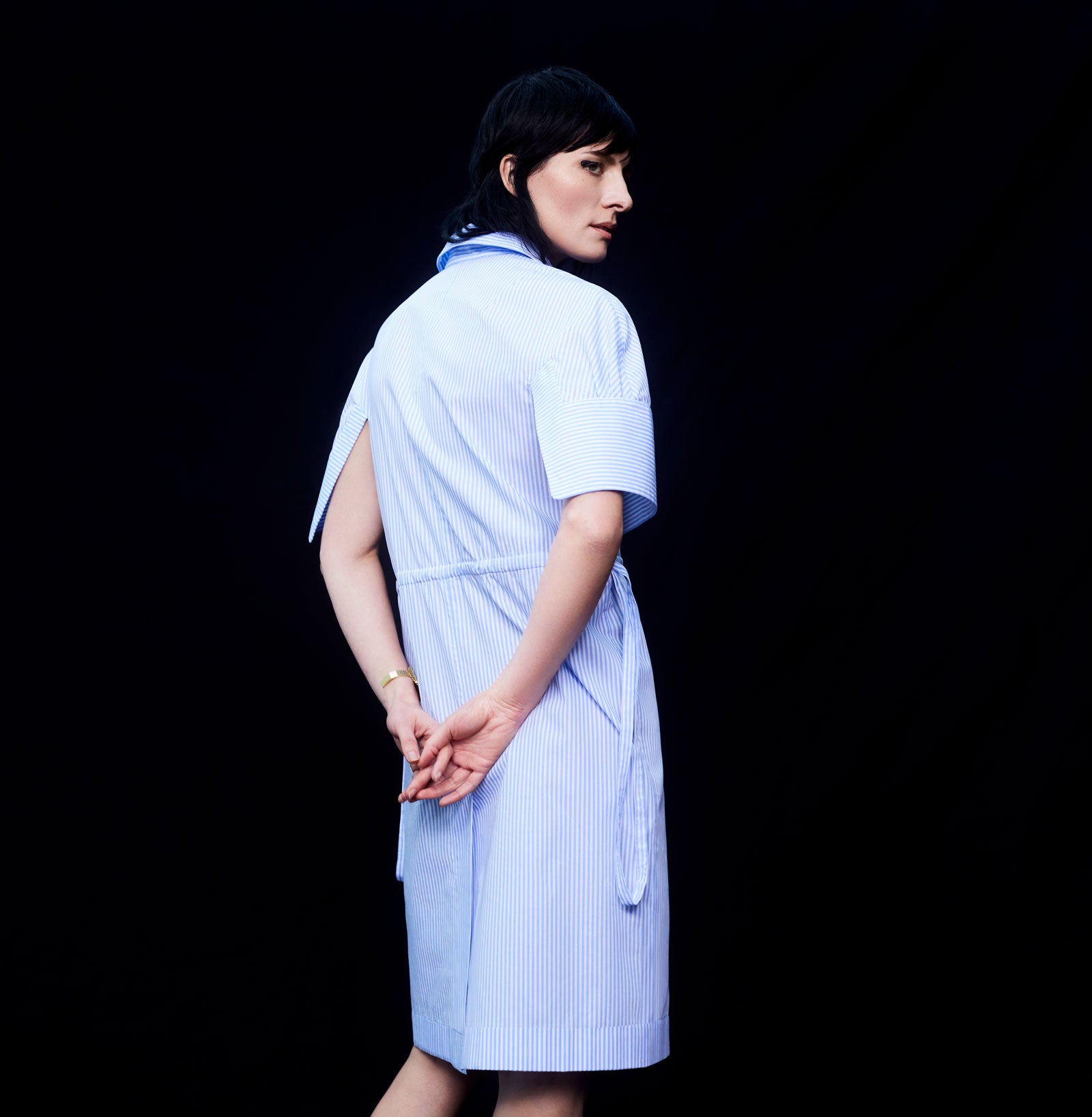 The Aiko dress reimagines the classic shirt dress with elegant short kimono sleeves and a flattering adjustable high-waist gathering. This versatile piece combines comfort and style, adapting seamlessly to your shape.